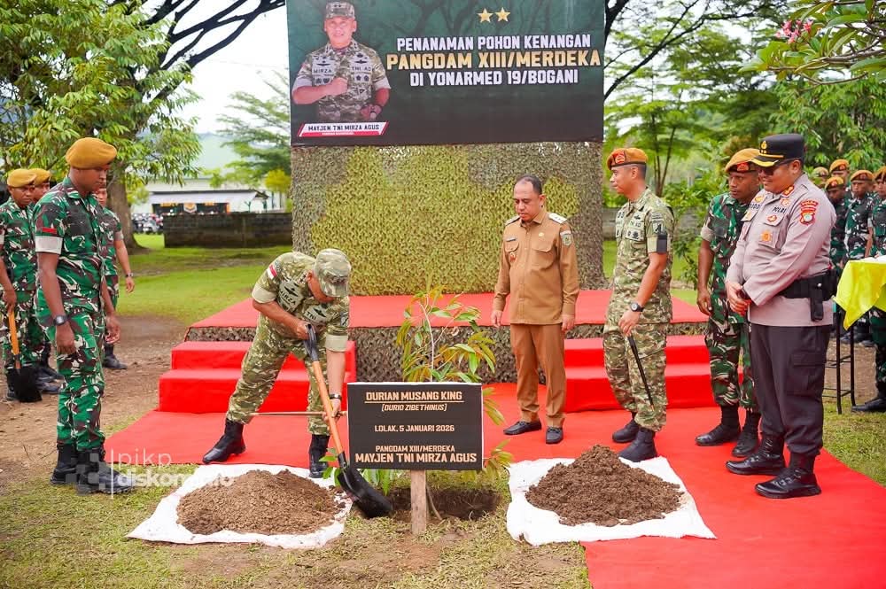 KUTIPAN, BOLMONG – Bupati Bolaang Mongondow, Yusra Alhabsyi, menyambut langsung kunjungan kerja Panglima Kodam XIII/Merdeka, Mirza Agus, di Markas Yonarmed 19/Bogani, Desa Dulangon, Kecamatan Lolak, Senin (5/1/2026).